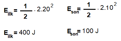 Cismin ilk mekanik enerjisi potansiyel enerjiye, son mekanik enerjisi ise kinetik enerjiye eşit ve 10E dir.