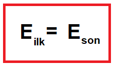 ilk ve son durumda sistemdeki toplam enerji eşittir.