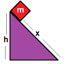 Yukarıda x uzunluğunda eğik düzlem sürtünmelidir. m kütleli cisim eğik düzlemde h kadar yükseklikten serbest bırakılıyor.