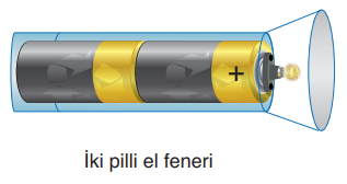 Yukarıdaki el fenerinde pil seri bağlanmıştır.